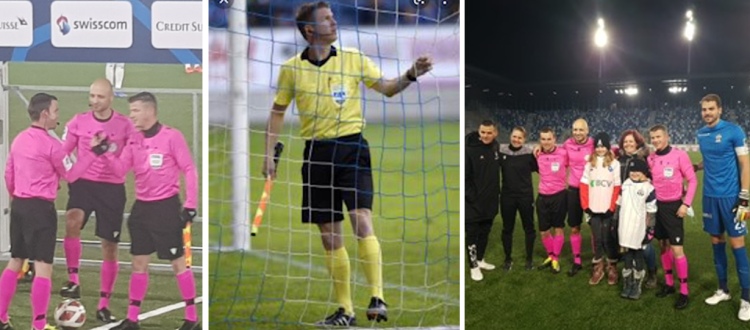 Après 231 matchs de Super League et une septantaine de matchs internationaux comme arbitre-assistant FIFA, il a officié lors son dernier match à Lausanne le 11 décembre 2021 pour la rencontre opposant le Lausanne-Sport au FC Zürich. Pour sa « dernière », il était accompagné de notre nouvel arbitre FIFA Luca Cibelli, de son compagnon de chambre au Gran Canari Alain Heiniger et d’Esther Staubli.
